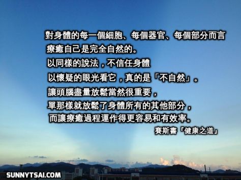 改變成:「健康是我身體自然的狀態,我只是暫時生病了,我信任我的身體。」