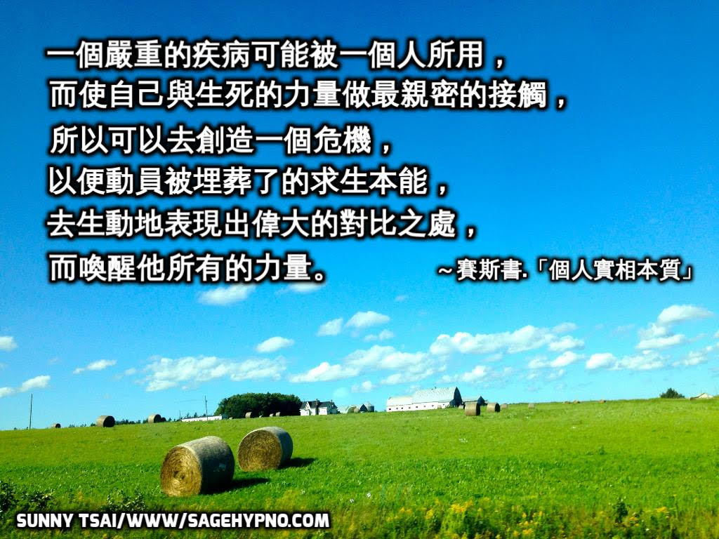 賽斯說:每一種疾病有其滯留之必要,有時候很快離開,有時候因為某一種「必要」而延遲改變,