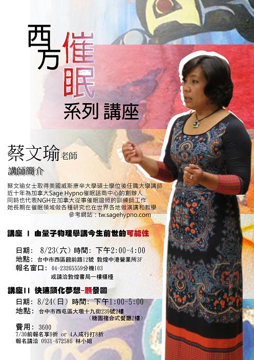 本次課程由專業催眠諮商師Sunny Tsai老師帶領,如果你是一位助人工作者,你可以透過本次學習到另一種更深層快速的助人方式,如果你是因為在生理上或心理上感覺有所阻礙無法突破,那麼,這個課程將會有機會讓每個人能夠深刻探討自身生命的重要課題為何?為何遇到阻塞使得生命無法順利往前?希望這是一次讓你能夠以科學的角度體會催眠的巨大影響力。 課程介紹 整個課程是採用「前世今生」作者Dr.Brain Weiss 魏斯醫生 的催眠訓練方法執行,在三週的訓練課程裏會涵蓋以下幾個領 域: